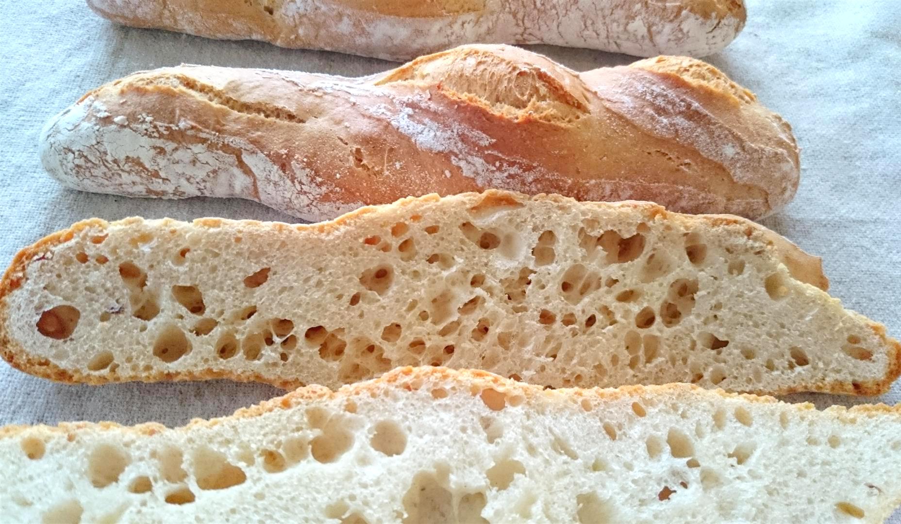 Hier möchte ich ein einfaches Grundrezept für Baguettes vorstellen, bei dem ich zum ersten Mal meine Teigreste aus der Lievito Madre Herstellung mit verbacken habe. Natürlich funktioniert dieses Rezept auch ohne Lievito Madre, aber heute ist die gleichmäßig Porung der Brote, trotz unterschiedlich dicker Stangen, sehr sehr schön geworden. Solche Porung gelingen mir eigentlich nur bei den badischen Seelen.