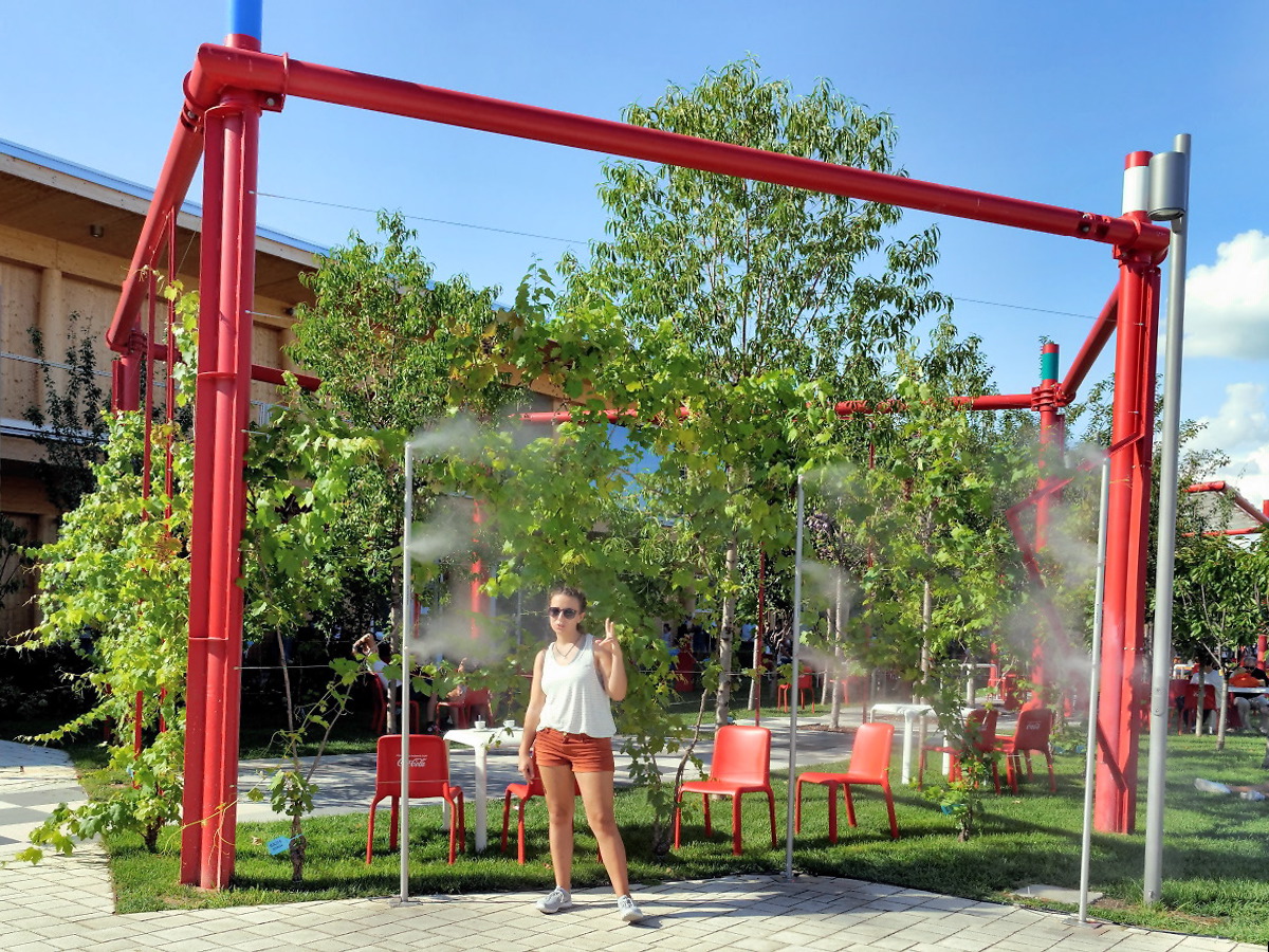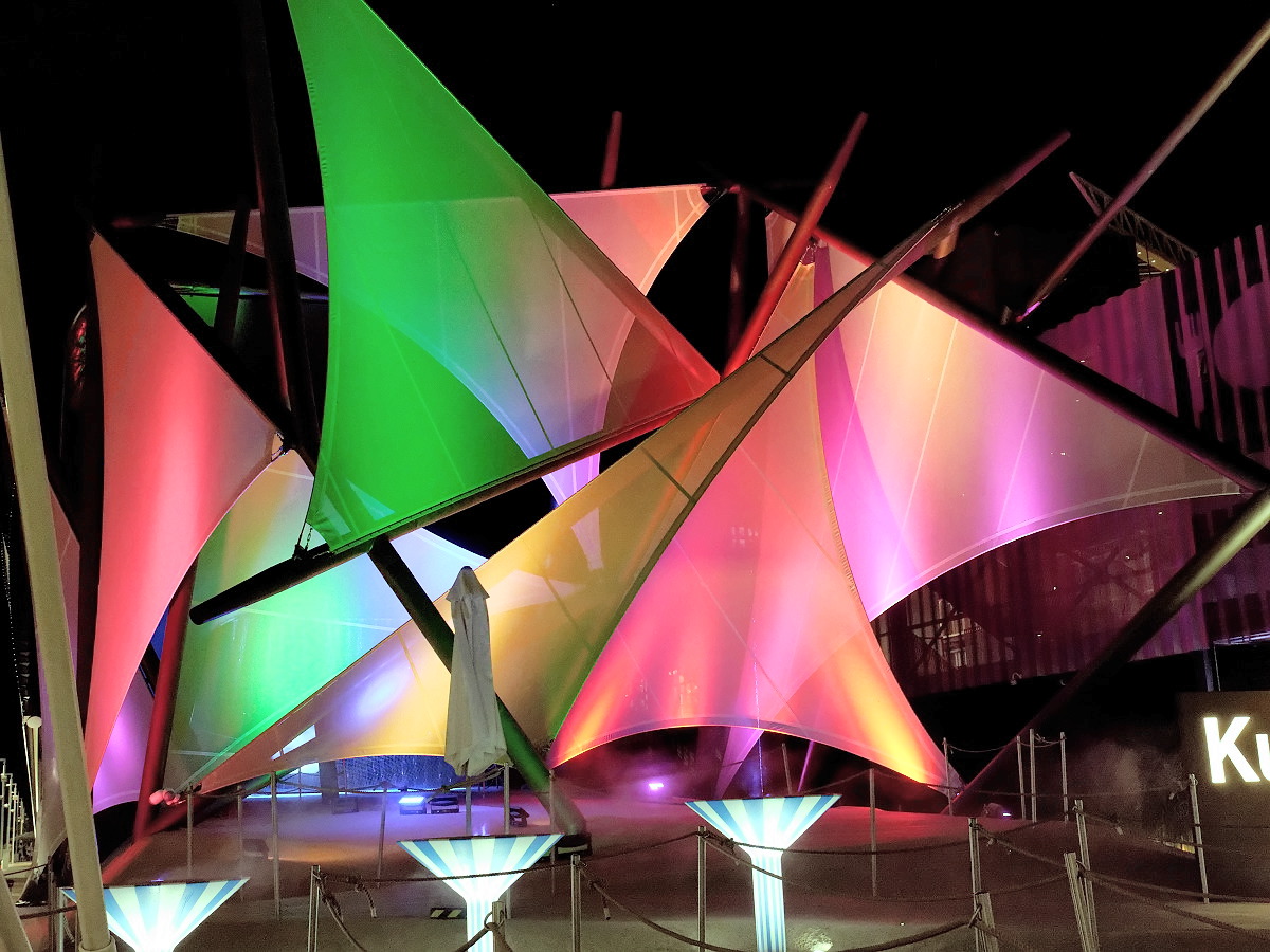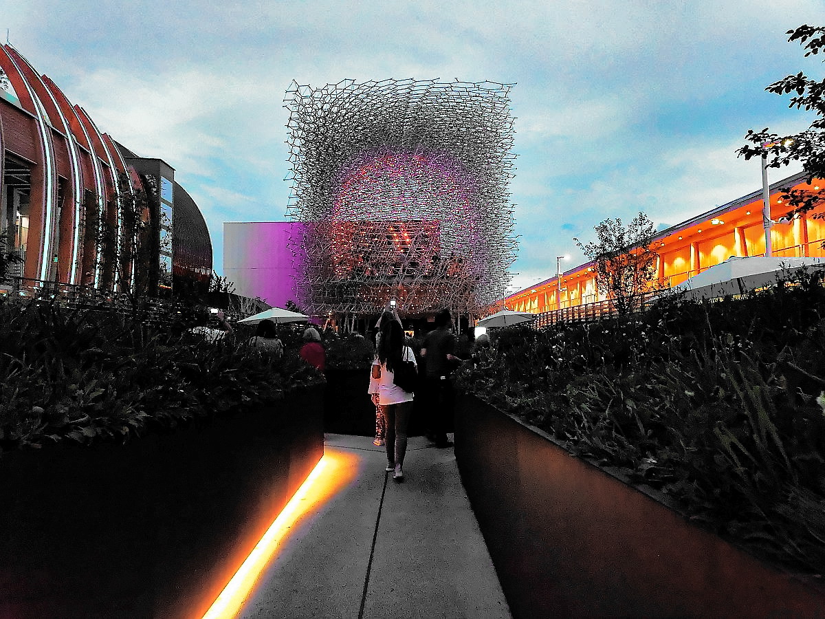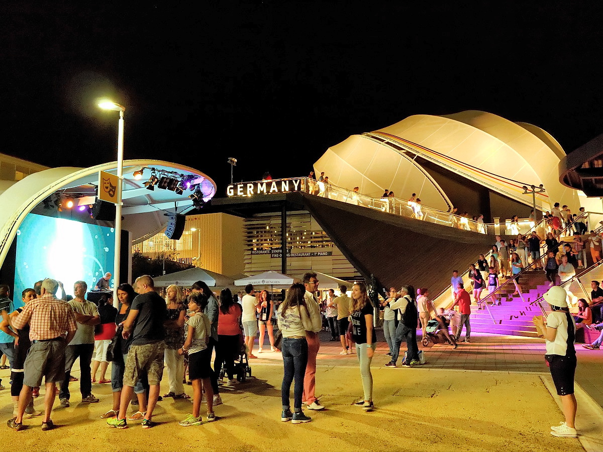 Gegen 19 Uhr gehen  wir auf die Expo. Das Abendticket kostet nur 5,- Euro. Überraschenderweise sind keine langen Schlangen am Ticketschalter und der Security Check geht auch schnell. Also hinhein ins kunterbunte Treiben. Hier begegnen sich Menschen aus 148 Nationen mit unterschiedlichen Kulturen und Aussehen.