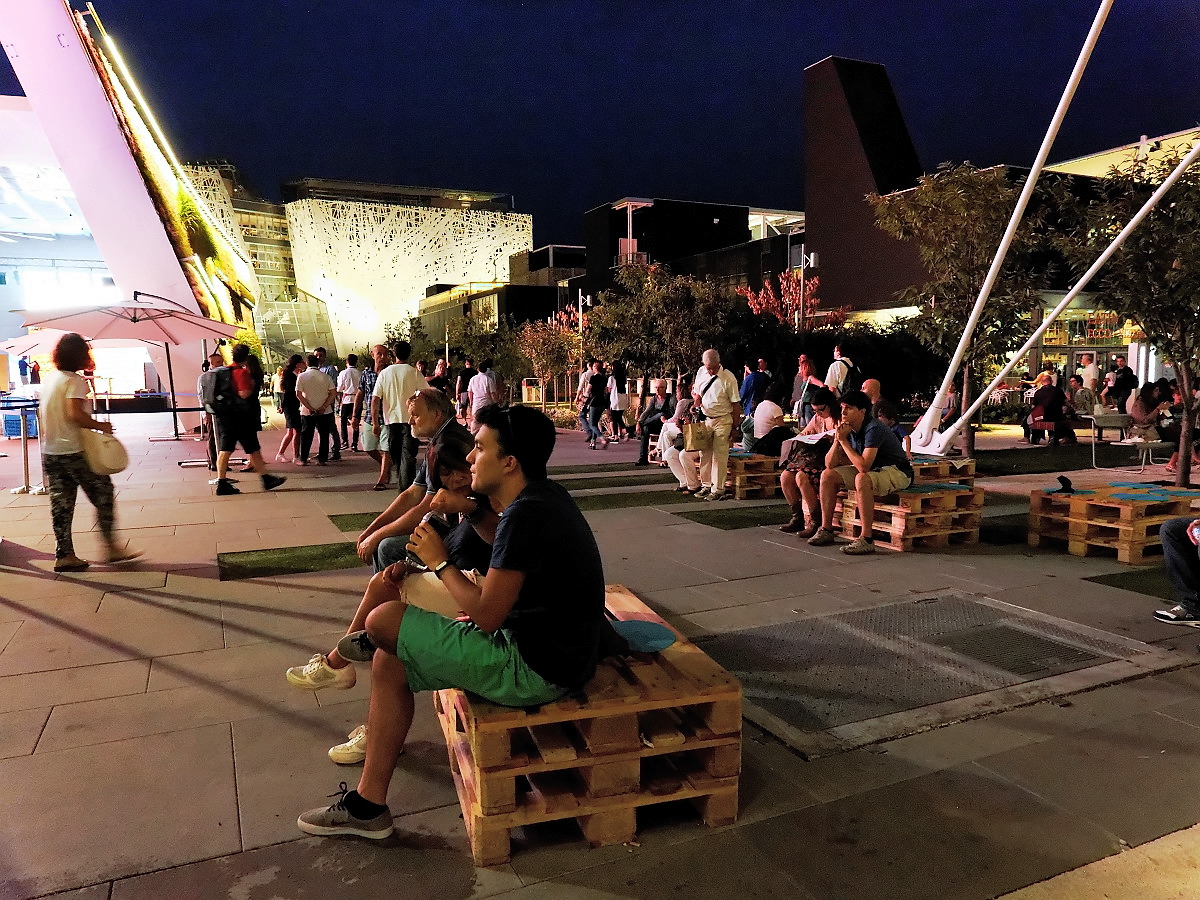 Tja, wie hat es uns gefallen? Die Stimmung war toll, das Essen vielfältig, exotisch und gut. Multikulti in jeder Hinsicht. Überall Patylaune, schöne Ruheinseln zum Relaxen und Regenerieren, außergewöhnliche Architektur und Kunst. Wer wollte, konnte Info`s abrufen vor allen in den Pavillons. Ich glaube die Italiener lieben sowas, denn sie kommen zuhauf und mit der ganzen Familie und dann wird geschlemmt als würden sie Zuhause nichts zum Essen bekommen. Eataly, Eataly, Eataly