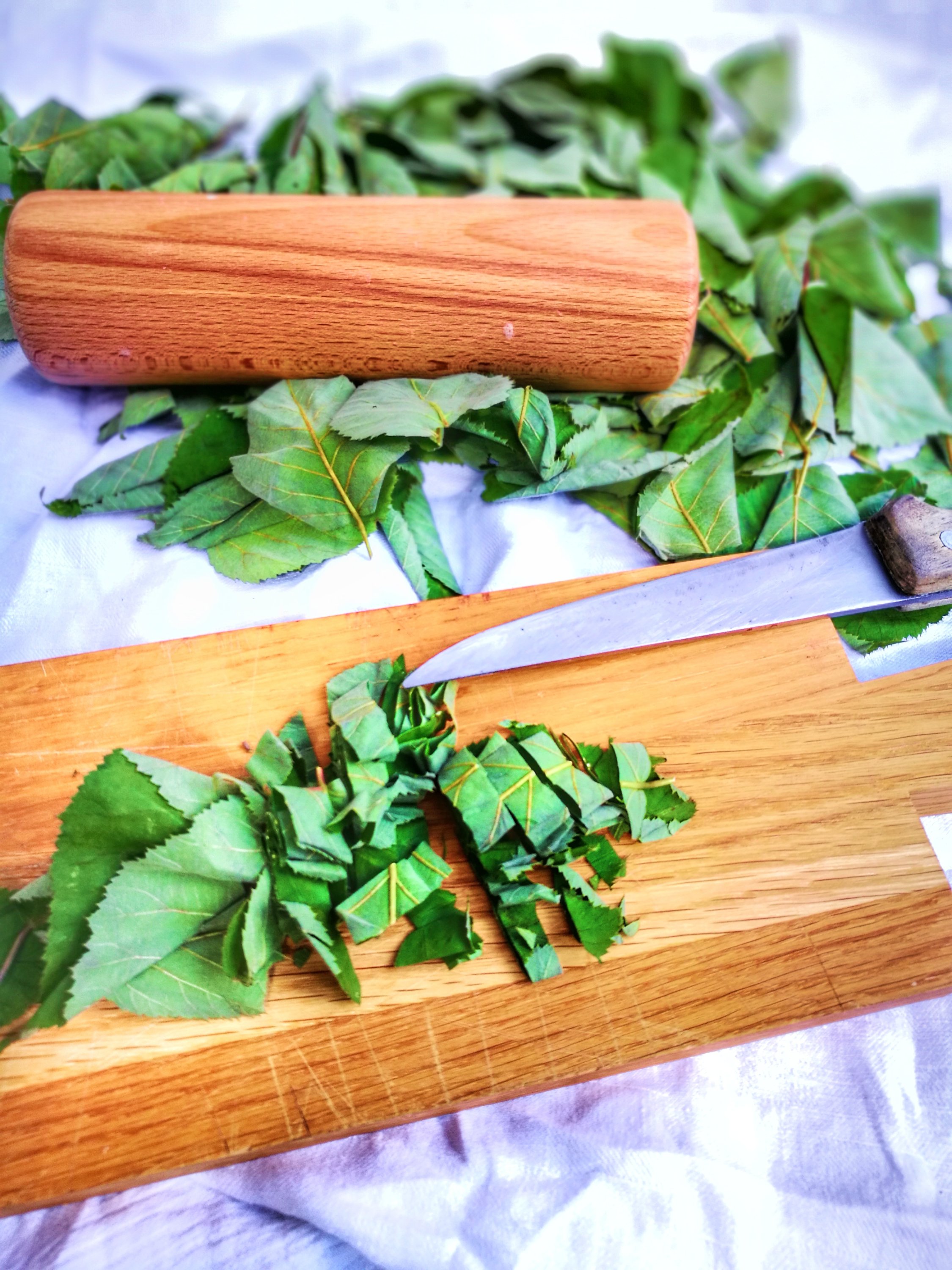Was auch für mich neu war und wirklich ein aromatischer Tee ergibt, sind fermentierte Brombeerblätter. Dieser Tee kann als Schwarzteeersatz von Frühjahr bis Herbst mit wenig Aufwand selbst hergestellt werden. Die Inspiration kam von http://www.kostbarenatur.net. Einfach die frischen Jungblätter abzupfen und einen Tag zum Anwelken auslegen. Auf diese Weise wird den Teeblättern etwas Wasser entzogen. Danach in einem Tuch mit dem Nudelholz platt walzen, um die Blattstruktur zu brechen. Hierbei können Enzyme austreten, die eine braune Färbung bewirkt. Danach die Blätter in feine Streifen schneiden und nach Belieben und eigenem Geschmack mit Zitronenzesten (und Zitronenverbene Blätter) vermengen, mit Wasser leicht befeuchten und luftdicht verpackt für einige Tage in die Sonne legen. Die geschnittenen Blätter können auch gut wie Sauerkraut in ein Glas oder in ein Tuch dicht gepresst werden, ich habe dieses Mal eine Plastiktüte verwendet. Bereits nach 4-5 Tagen ist der Tee fermentiert und sollte danach an der Luft, in der Sonne oder in einem Dörrapperat getrocknet werden. Da die Fermentation erst durch die Trocknung abgeschlossen wird, können die Blätter auch dunkler einige Tage länger fermentiert werden.1-2 EL dieses wunderbaren Tees auf 500 ml heißem Wasser kann eisgekühlt jetzt im Sommer aber auch mit Milch und Gewürzen zum Winter hin getrunken werden. Meine Lieblingsgewürze zu diesem Tee sind ein Stück Zimtstange, eine zerstoßene Kardamomkapsel und ein kleines Stück einer getrockneten Nelke.