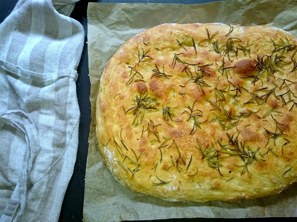 Ich möchte euch hier eine klassische Focaccia mit Öl, Rosmarin und Meersalz als Belag vorstellen. Dünn ausgerollt und mit Tomatensoße belegt, wird im Handumdrehen aus diesem Grundteig eine Pizza daraus.