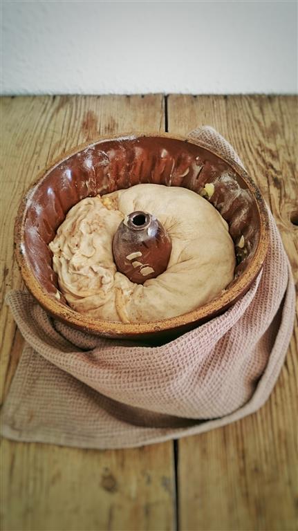 Heute möchte ich euch einen schnellen Gugelhupf präsentieren, der eigentlich aus der Not heraus geboren wurde und final ein ganz schön leckeres Ende genommen hat. Nach einer gelungenen und sehr schönen Backvorführung am Donnerstag Abend bei Romy Ries Concept Store hatte ich einen Brotteig aus 500g Dinkelvollkorn, 300g Wasser, 15g Hefe und 1TL Salz übrig und habe ihn, luftdicht verschlossen, für 2 Tage im Kühlschrank aufbewahrt.