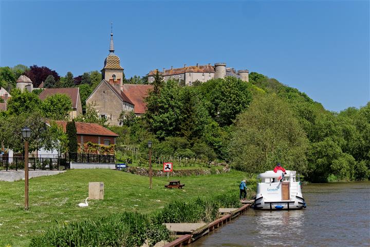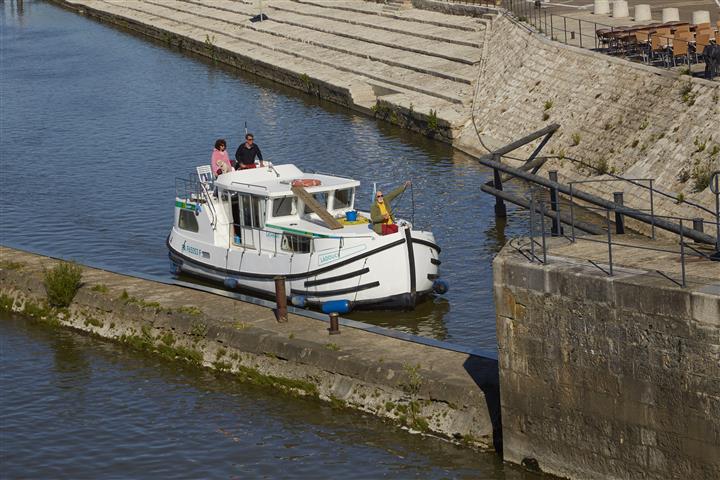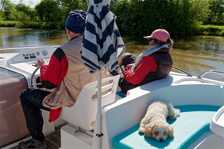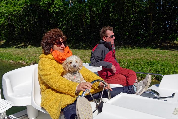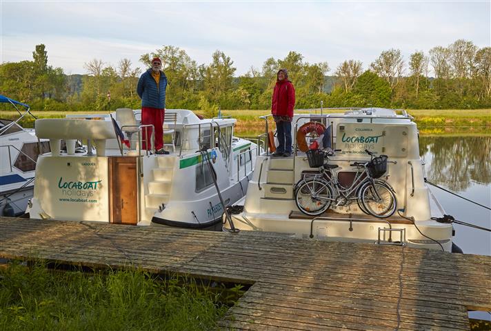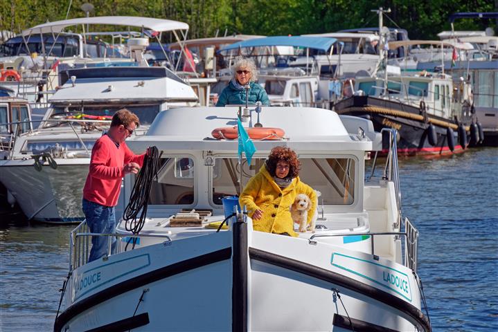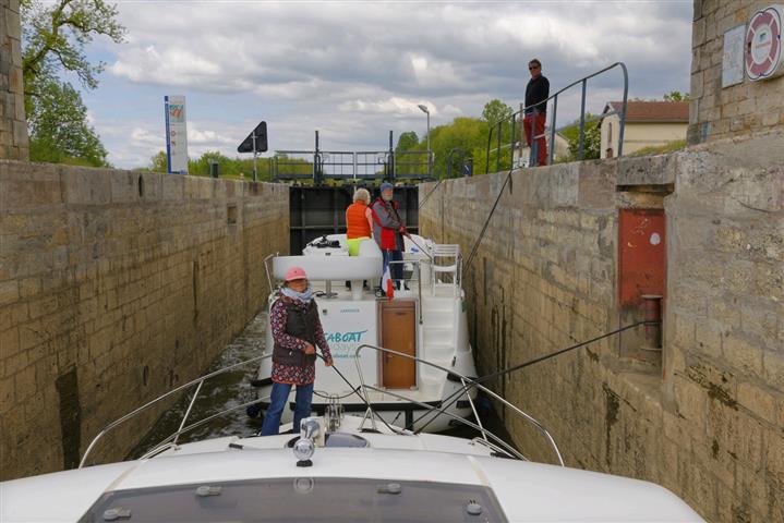 Mitte Mai wurden wir wieder zu einer Hausboottour von unseren Fotografenfreunden Martin und Bill eingeladen. Sie fotografieren für den Hausbootanbieter Locaboat schon seit vielen Jahren. Daraus haben die beiden eine sehenswerte Diashow zusammengestellt: mit dem Hausboot durch Frankreich. Diesmal geht´s wieder ins Burgund. Und wir haben als Premiere unseren kleinen Pudel Tom dabei. Wird es ihm auf dem Boot gefallen, wird er an Bord bleiben? Die Crew ist zunächst skeptisch. Wir starten an einem regnerischen Tag mit zwei gemieteten Booten im Hafen Scey -sur- Saône und wollen zu siebt und Hund eine Woche lang gemütlich mit zwei Booten auf der Saône entlang tuckern. Für mich ist das ein bisschen wie Pilgern auf dem Wasser.