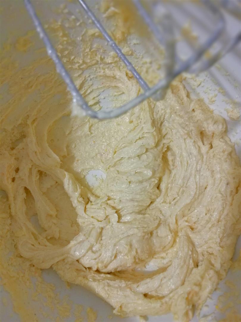 - Zucker und Vanillemark vermengen und zusammen mit der erkalteten Butter mit dem Handmixer schaumig aufschlagen