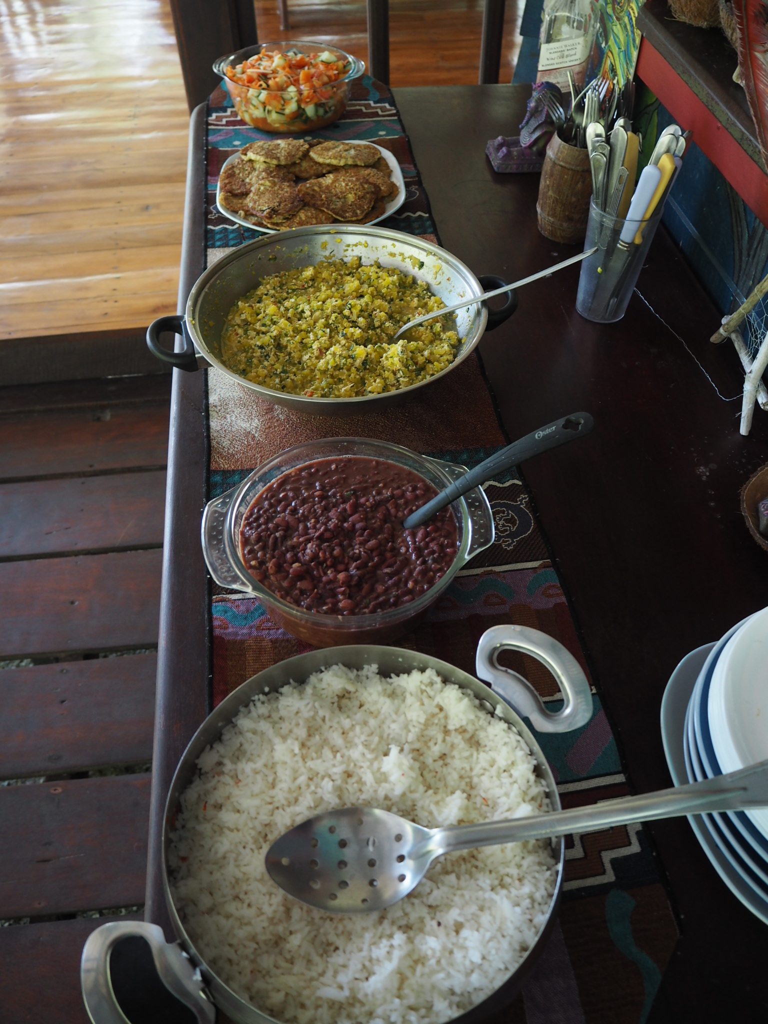Die meiste Zeit waren wir zu sechst dort, Reymundo, sein Sohn Reymar und die anderen waren Freiwillige aus Frankreich, Singapur und Deutschland. Sobald wir nicht gearbeitet, gekocht und gequatscht haben sind wir mit dem Boot auf den Golfo Dulce gefahren, haben gefischt, geschnorchelt, Musik gehört, relaxt oder gemeinsam gegessen. Ein ganz besonderes Erlebnis während solch einer Bootsfahrt war inmitten einer großen Herde von ca. 300 Delfinen zu geraten – unglaublich magisch war das. Überall, auch direkt an bzw. unter unserem Boot waren Delphine, schwimmend oder springend und stets mit uns Augenkontakt aufnehmend. Wie als wollten sie sehen, wer da im Boot sitzt.