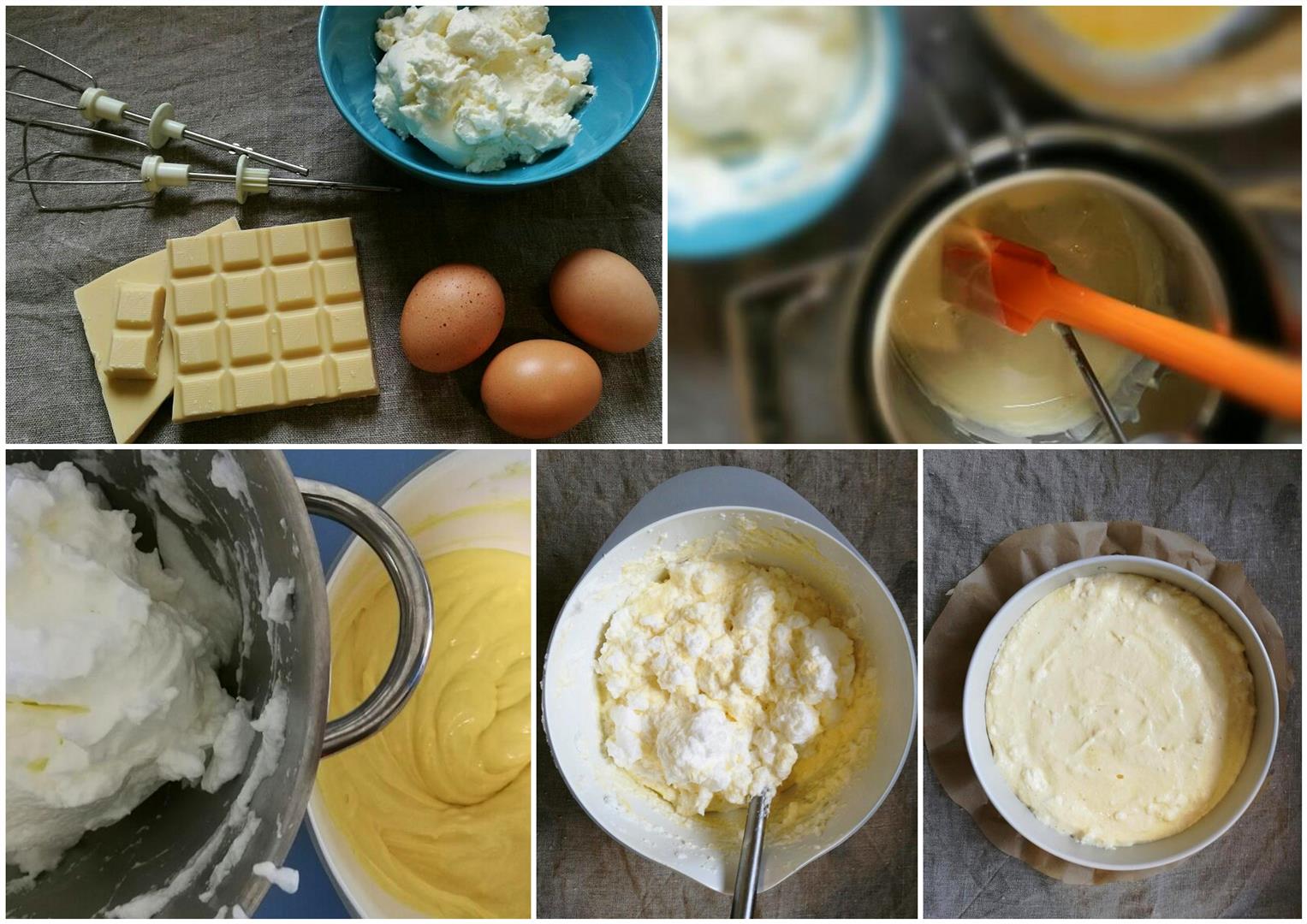 4. Danach zuerst die Quarkmasse und anschließend die Eigelbe unter die geschmolzene Schokolade rühren.