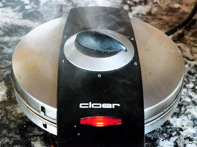 Im Waffeleisen nach Anleitung den Teig ausbacken bis sich die Waffel löst.
