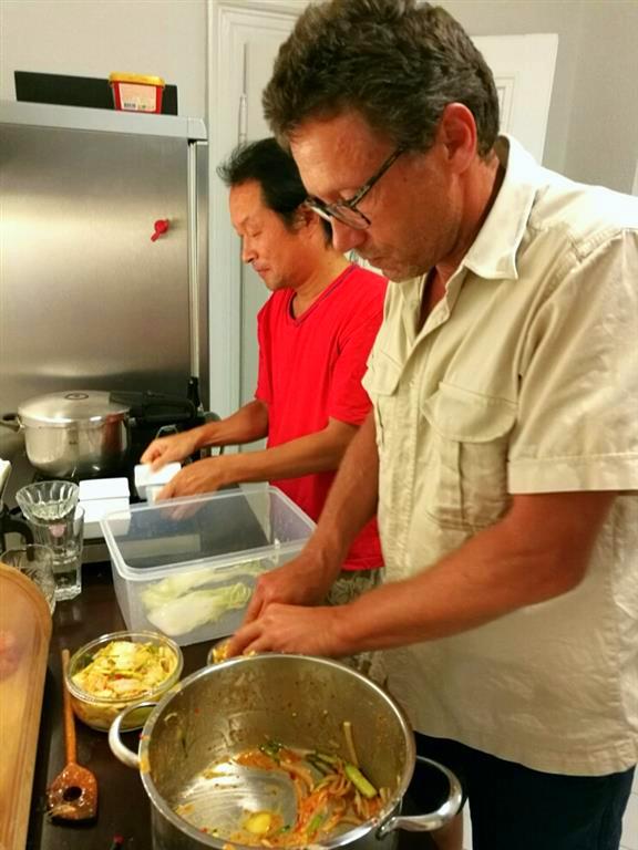 Das hier vorgestellte Rezept basiert auf Chinakohl und stammt von unserem koreanischen Freund und Maler Moon Kwan Park. Moon Kwan betreibt im Herzen von Karlsruhe die zeitgenössische Kunstgalerie gallery artpark, deren Fokus neben dem Austausch von asiatischer und europäischer Kunst und Kultur auch auf den Besuch von Kunstmessen in aller Welt liegt. Moon kocht gerne und zeigte uns gestern sein Rezept vom heimischen Kimchi. Mitgeholfen haben Johannes und Barbara, die beide mit Moon zusammen an der Kunsthochschule Karlsruhe studierten.