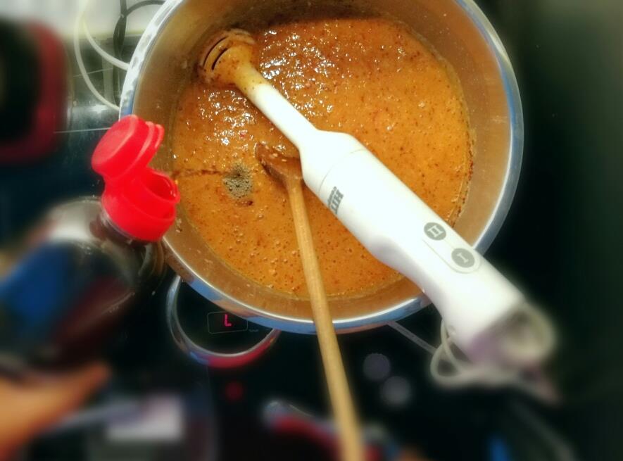 - Reismehl mit dreifacher Menge heißem Wasser übergießen und quellen lassen (wer es ohne Kohlenhydrate möchte, kann das Reismehl auch weglassen aber mit Mehl lässt sich die Paste besser auf die Kohlblätter streichen). Ist der Brei abgekühlt kommen Peperoni- oder Paprikapulver, zerstoßener Ingwer, Zucker und Fischsoße hinein. Alles pürieren und die Würze sowie die Schärfe abschmecken. Bei Bedarf gerne noch etwas Paprikapulver und Ingwer zugeben. Wer´s wässriger mag, kann noch etwas Wasser zugeben.