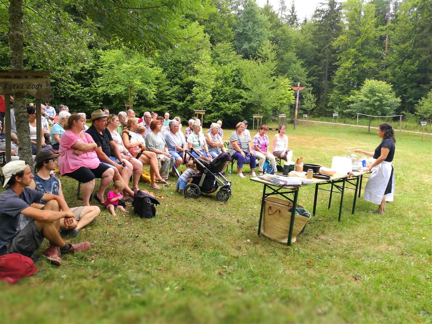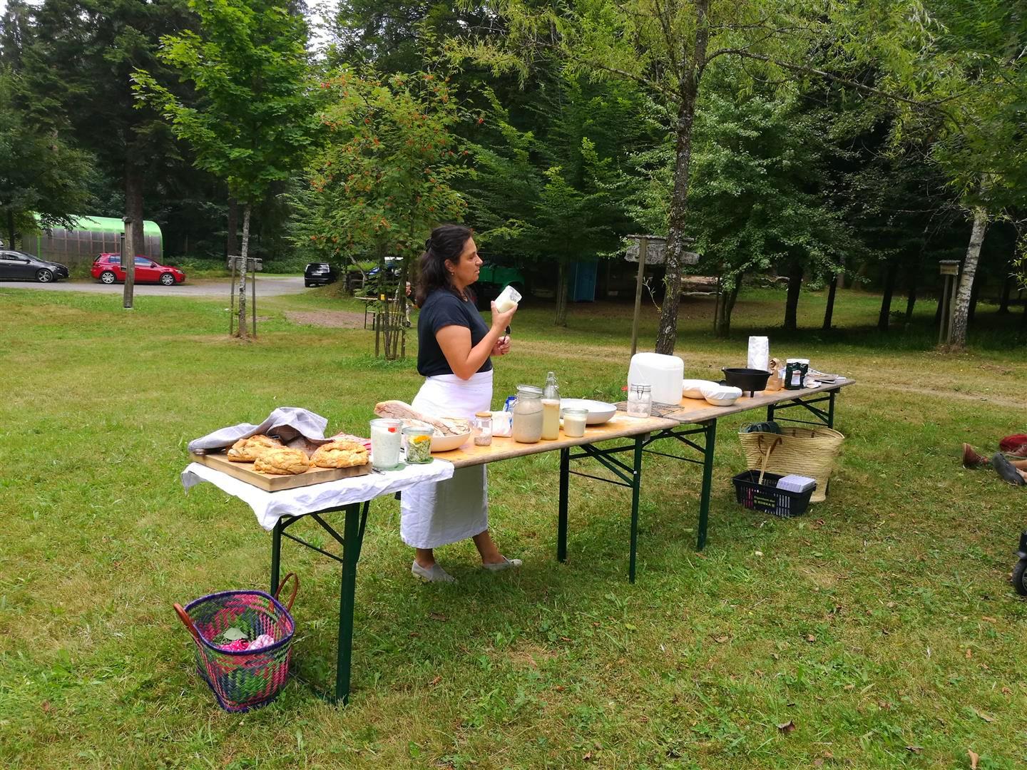 Im Rahmen von Kultur am Kohlenmeiler an der alten Pflanzschule mitten in den Wäldern von Baiersbronn fand auch dieses Jahr 2018 wieder eine wunderbare Backvorführung statt. Gezeigt wird wie aus einfachen Grundzutaten Mehl, Wasser und Salz ein gutes Brot entstehen kann und plaudern gerne aus unseren Backbüchern: BROT. Frisch gebacken aus dem Ofen und vom Grill und Backen mit Urkorn. Es werden der Umgang mit weichen Teigen und das spezielle Dehnen und Falten von Teigen mit Sauerteig und wenig Hefe vorgestellt und wie das Brot im Dutch Oven am Lagerfeuer gebacken wird.