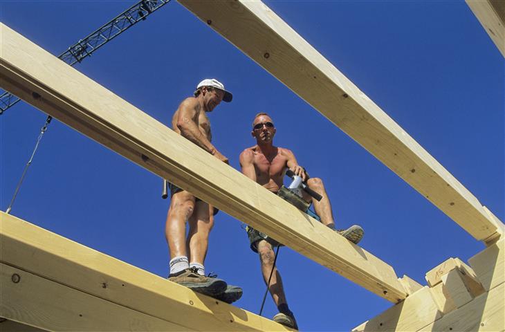 Der Aufbau unsres Holzhauses, lief reibungslos. Wir hatten jetzt Mitte September und doch brannte die Sonne noch erbarmungslos auf unsere armen Zimmerleute herunter. Die Fichtenbalken waren so gleißend hell, dass die Zimmerleute es vorzogen mit Sonnenbrille zu arbeiten. Bei unserem Nachbarn, einem praktischen Arzt, lagerte ich Eis in der Tiefkühltruhe für einen Eiskaffee und zur Abkühlung für alle. Für Vanilleeis gingen sie gerne zum Arzt.  Mir sind die Nachmittage auf der Baustelle bei Eiskaffee mit Schlagsahne immer noch in angenehmer Erinnerung. Der Nachbar oberhalb von uns ist Masseur, der seine Dienste unseren Leuten auch schon angeboten hatte.