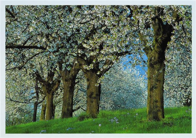 Warum sind wir Karlsruher, die 10 Jahre in Grenzach lebten, ausgerechnet da gelandet? Der Grund war eine blaue Blüte. Genauer eine Postkarte aus unserer Postkartenserie mit einer blauen Blüte. Durch diese Prunkwinde, genaugenommen durch dieses veredelte Ackerunkraut, habe ich das Architektenehepaar Gothe kennengelernt. Sie waren gerade dabei bei Kandern,  bzw 5 km östlich in Malsburg, ein Holzständerhaus zu bauen. Als ich die Gegend am Fuße des Blauen zusammen mit meinem Mann das erste Mal bereiste, erschien sie uns als das, was wir schon immer gesucht hatten: ein kleines grünes Paradies.