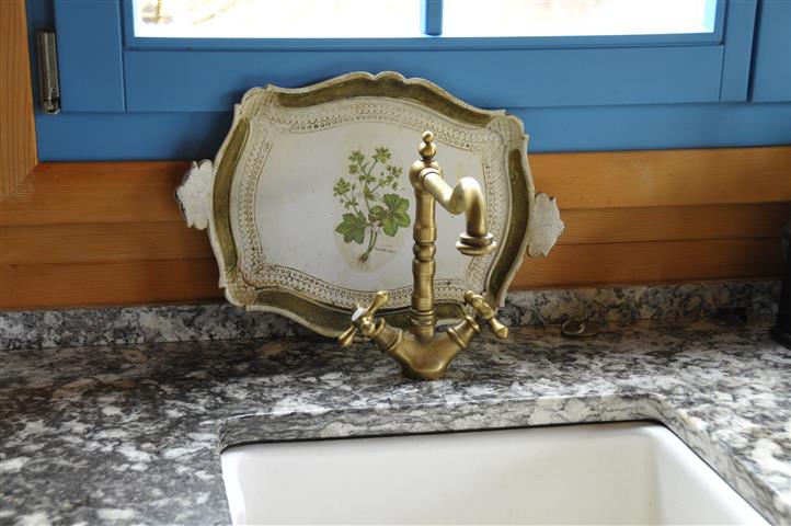 Auf einer unserer Englandreisen haben wir uns einen weißen Sinkspülstein aus Keramik mitgebracht. Aber er war schneller weg als er hierher transportiert wurde. Meine Schwester, die vor uns ein Häuschen baute, wollte ihn unbedingt für ihre Traumküche haben. So mussten wir nochmal nach England in Urlaub fahren, um das begehrte Teil wieder zu kaufen. Aber halb so schlimm, denn wir wollten dort noch eine alte wiederaufgearbeitete Badewanne auf Greiffüßen besorgen. Sie wurde außen königsblau gestrichen und die Greiffüße weiß, diese halten eine blaue Kugel. Sie lag dann auf der Reise wie ein Käfer auf dem Rücken mit vier Füßen nach oben im VW Bus. Wir entdeckten dort noch ein Paar Wandlampen aus Silber fürs Bad, sowie einige Lampen für die Küche mit blauen und durchsichtigen Tulpenschirmen. Alles günstige, individuelle Einrichtungsgegenstände mit Gebrauchsspuren und Patina. Obendrein erinnern sie uns an unsere Urlaube in England. Es gibt dort viel mehr Geschäfte mit gebrauchten Wohnaccessoires aller Arten ob Lampen oder Bademöbel als bei uns. Ach ja, ein Waschtisch aus Keramik auf zwei weißen Säulen musste auch noch mit. Wir hatten uns in ihn verguckt, denn er ist praktisch, sieht edel aus und bildet neben der blauen Badewanne einen Blickpunkt im Badezimmer. Auch ein alter Spiegel wurde eingepackt, leicht vergilbt und mit einem versilberten Rand, so passt er gut zwischen die alten Wandlampen im Bad. Vor lauter positivem Kaufstress ließen wir einen Karton schon bezahlter Lampen im Laden stehen. Er wurde uns freundlicherweise vom Besitzer des Ladens nach Hause nachgesandt. Wir kauften die Armaturen fürs Badezimmer und die Küche auch in England. Besonders die tellergroße Regenbrause für die Dusche hatte es uns angetan, genau wie die in Badenweiler im Thermalbad. Das Wasser fällt wie weicher Regen auf die nackte Haut. Wir kauften dann eine ähnliche Regenbrause bei Dornbracht. Die Duschrückwände möchte ich aus Marmor haben, wie ich sie im alten Kurbad in Badenweiler gesehen habe.