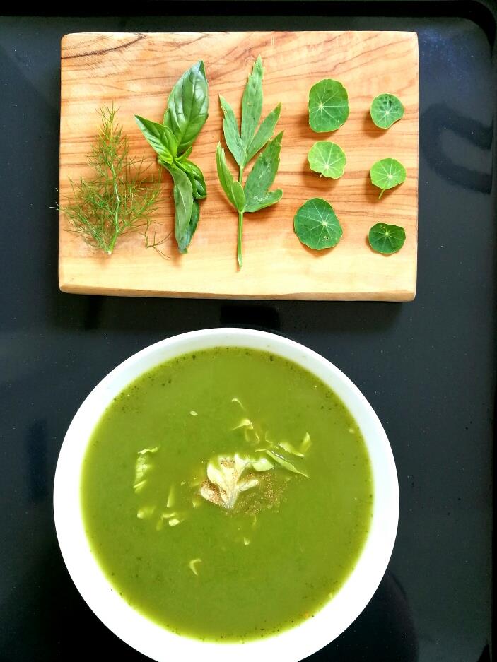 - Die fertige Salatsuppe l´kann mit Dill, Liebstöckl, Kapuzinerkresse, Kerbel oder frischer Blattpetersilie garniert werden.