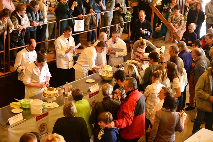 Es nehmen sowohl Profis wie Amateure am Wettbewerb um die beste Torte teil. Jeder Teilnehmer bringt seinen dunklen Biskuitboden mit sowie Füllung und Dekoration. Zur Verfügung gestellt werden: Schladerer Kirschwasser, Konfitüren der Firma Faller, 30%ige Sahne von Schwarzwaldmilch. Jeder Teilnehmer bereitet in 20 min seine Torte vor dem Publikum zu inklusive Auf-und Abräumen. Die gesponserte Sahne wird vorher in der Kurhausküche geschlagen. Dafür steht ein Sahnebläser zur Verfügung. Die Konditoren können geradezu in Schlagsahne schwelgen oder gefühlt baden, mindestens 2 Liter pro Torte. Eine Jury bewertet dann jede Schwarzwälder nach Optik, Handwerk und Geschmack. Sie ist hochkarätig besetzt mit diplomierten Konditormeistern der Patisserie und der Handwerkskammer. Die gute Seele vor Ort und Mitinitiator des Festivals ist der Küchenmeister vom Hotel Engel in Todtnauberg.