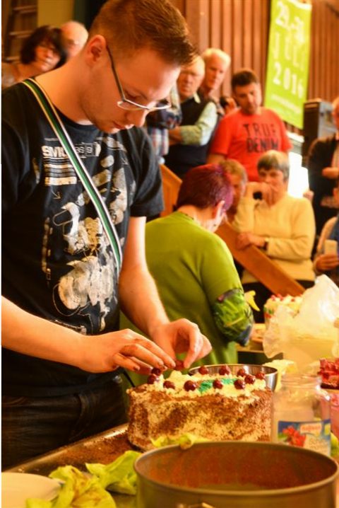 Es war die Torte von Frau Weber im unteren Bild, die auch den letzten Wettbewerb gewann. Sie bekam ein Preisgeld von 250,- Euro. Die Torte im obigen Bild mit den Kirschblüten gewann die Silbermedaille. Eine Mordsgaudi war es für alle!