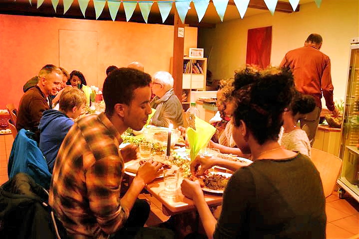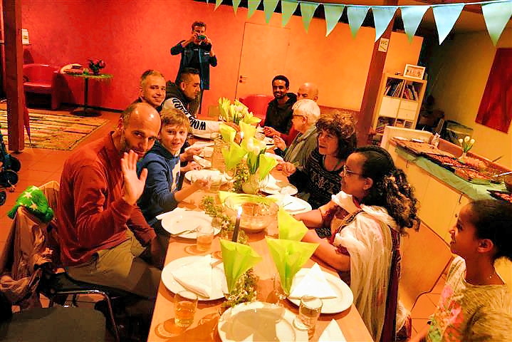 Die Familie Michiel unseres Läufers Zersenay aus Eritrea kocht für die Sponsoren Nationalgerichte wie Gaat und Ingera! Dazu gibt es eine hauseigene Kaffeezermonie und reichlich Popkorn! Alles traditionell und selbstgemacht von Landsleuten aus Eritrea! Eingeladen hatte Patrick vom Tripowerteam, das Zersenay unterstützt.