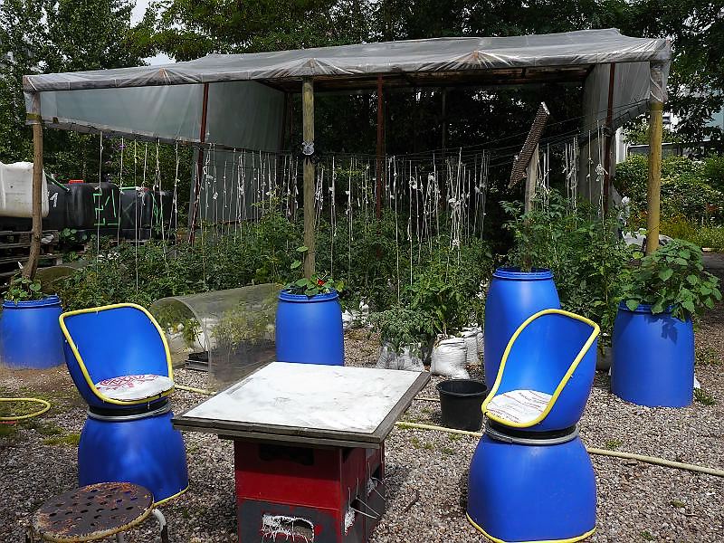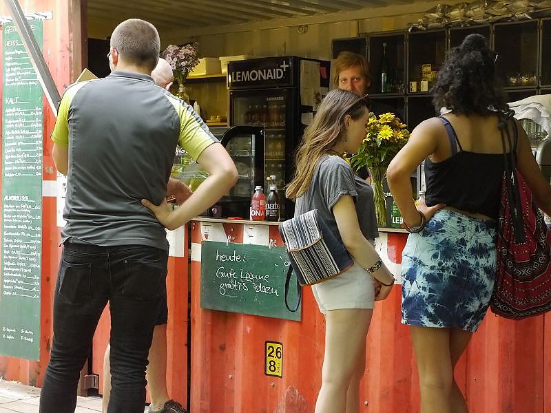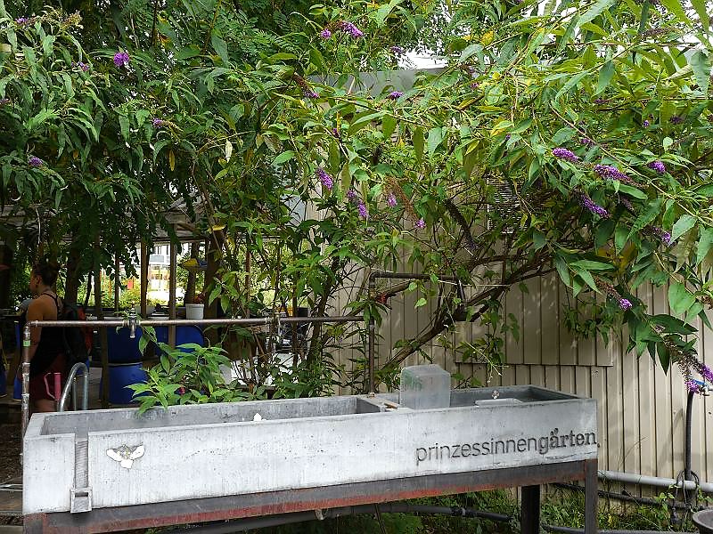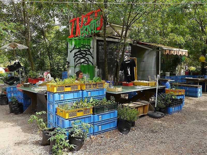 Auf der Brachfläche des Moritzplatzes gründeten Robert Shaw und Marco Clausen 2009 die Prinzessinnengärten. Die Idee stammt aus der urbanen Landwirtschaft von Kuba, wo Robert Shaw 12 Jahre lebte. Außerdem war er mittlerweile Vater geworden und wollte seinen Sohn mit zur Arbeit nehmen. Da der Nutzungsvertrag der Stadt immer für ein Jahr gewährt wird, entstand ein mobiler Garten in Reissäcken, Bäckerkisten und Tetra-Paks. Dieses ökologische Projekt mit gastronomischen, soziologischen und kulturellen Komponenten, lebt stark von den Leuten in der Nachbarschaft. Der Platz ist kunterbunt und die Akteure lassen sich was einfallen. Auch die Hinweisschilder sind witzig gestaltet wie das Schild an der Gärtnereitür auf dem steht “ unbeaufsichtigte Kleinkinder bekommen einen Hundewelpen und einen doppelten Espresso geschenkt „. Schaut mal rein: